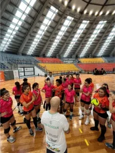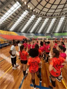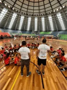 Durante o Festival CO-LEAGUE em São José dos Campos, o jogador Matheus Brasília, que atua como levantador e capitão do time Farma Conde Vôlei São José, conduziu uma palestra e conversa com as atletas participantes, trocando experiências e enriquecendo a vivência das jovens.